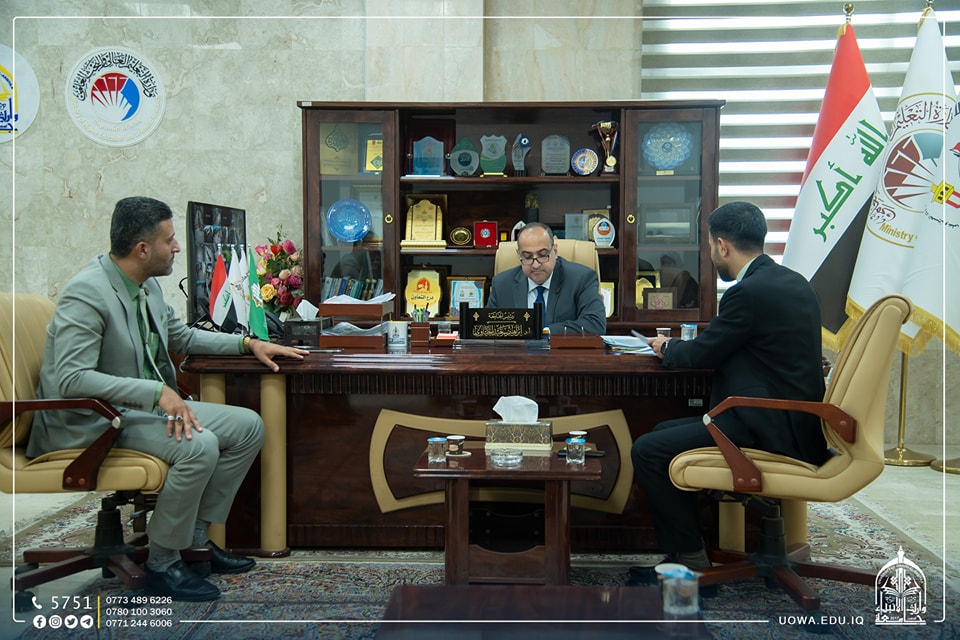 A delegation from the University of Warith Al-Anbiyaa recently paid a visit to the University of Technology with the aim of fostering collaborative efforts and exploring opportunities for joint cooperation in the scientific and research domains. Through visual documentation, the pictures capture the fruitful discussions held between the two universities' representatives. The visit sought to establish mechanisms for active cooperation, enabling students to engage in shared scientific and research endeavors.